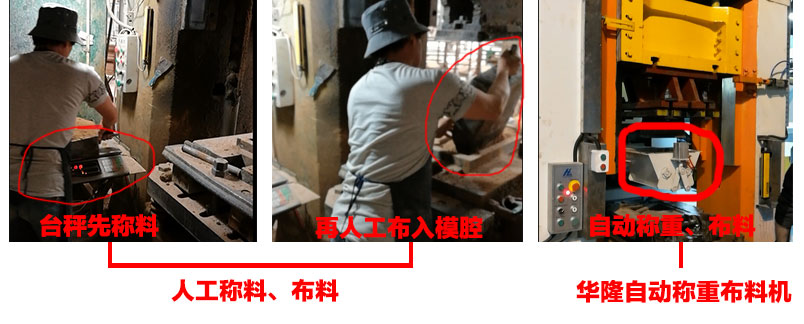 也有部分耐材企業(yè)在這個環(huán)節(jié)選擇了新技術(shù)的應(yīng)用,華隆自動稱重布料機。可以實現(xiàn)自動上料、計量稱重、布料到模腔內(nèi)。可以減少一個人工的使用,同時避免了人為因素對產(chǎn)品質(zhì)量的影響,保證產(chǎn)品質(zhì)量的一致性。